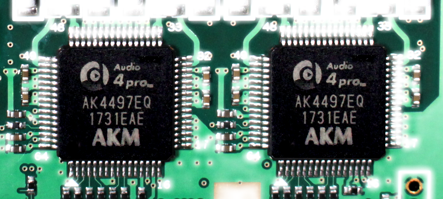 D/Aコンバーターには旭化成エレクトロニクス社製ハイエンドオーディオ用プレミアムDAC、AKM4497EQを2基とオーディオ専用シグナルプロセッサ(XMOS)を搭載し、PCM最大384kHz/32bitまでのBitToBit、DSD256(1bit 11.2MHz)までのネイティブ再生に対応。出力端子としてはバランス出力端子(2.5mm4極)とアンバランス出力用3.5mm端子(光出力およびLINE OUT端子兼用)を備え、USBデジタル出力にも対応しています。