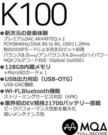 K100は、業界をリードしてきた長年の経験と技術、そして新たな挑戦でポータブルオーディオのサウンドを再構築します。